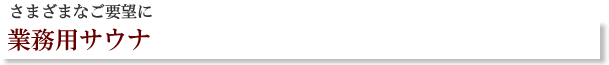 健康ランド、フィットネスクラブ、エステティックサロン、ホテルなどにおいて、 お客様のご要望に合わせてサウナ全般の企画・設計から施工まで承っております。